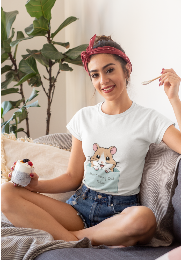 Crafted for the discerning homebody, this top blends comfort with a quirky aesthetic that reflects your unapologetic personality. Made from a soft, breathable fabric, the “Not Coming Out” crop top feels luxurious against your skin, making it the ideal choice for all-day wear. Its relaxed fit allows for easy movement, whether you’re reaching for that snack or just stretching out on the couch. Pair it with your favorite lounge pants or shorts, and you’re all set for a day of unparalleled coziness.