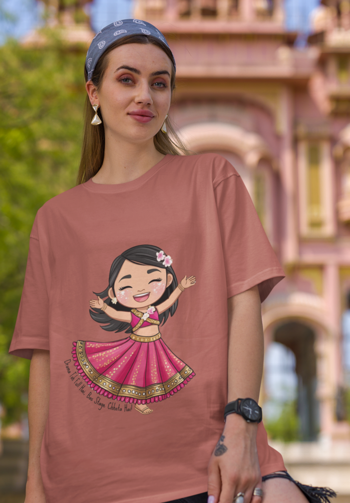 In summary, the “Stage Choti Hai” oversized tee is more than just a piece of clothing; it’s an embodiment of the spirit of a performer. Make a bold choice and let your attire reflect your vibrant personality. Grab yours today and let the world be your audience!