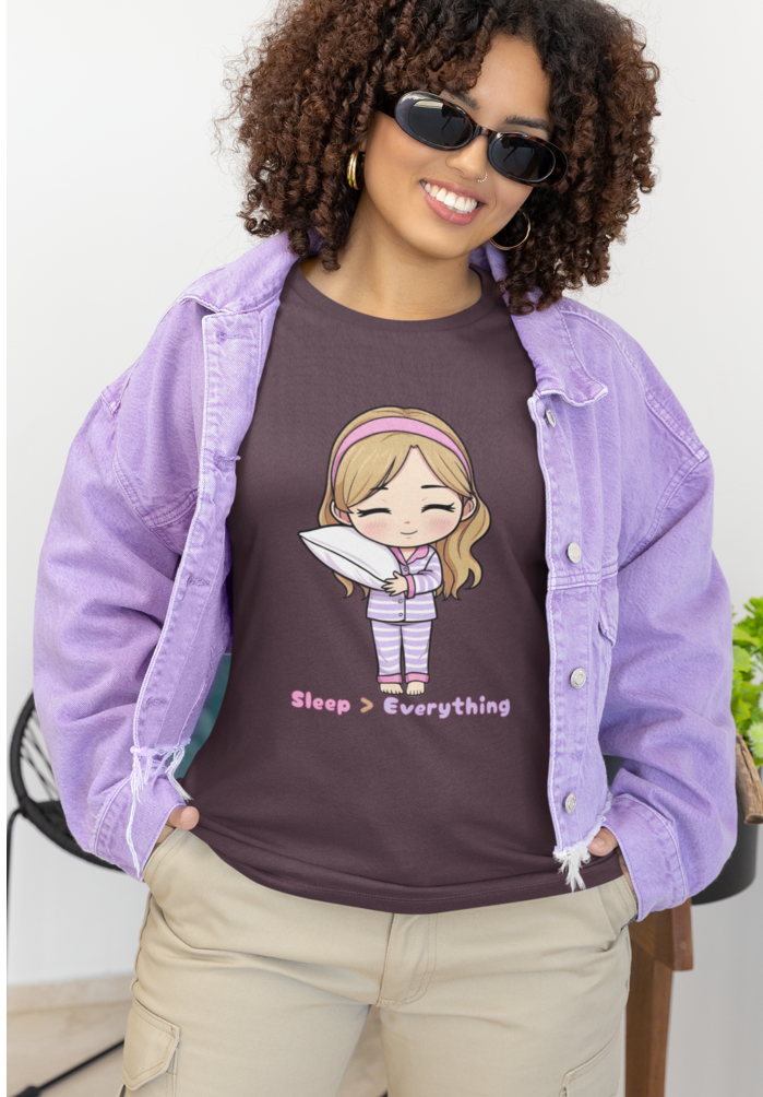 The “Sleep Over Everything” tee is not just a garment; it’s an experience. Designed with a relaxed fit, this shirt allows you to move freely while you enjoy those precious moments of rest. Whether you’re indulging in your favorite series on the couch or simply lounging around the house, this top is sure to keep you feeling snug and stylish. Its playful slogan embodies the spirit of staying in and savoring your downtime, making it a perfect gift for fellow nap enthusiasts.