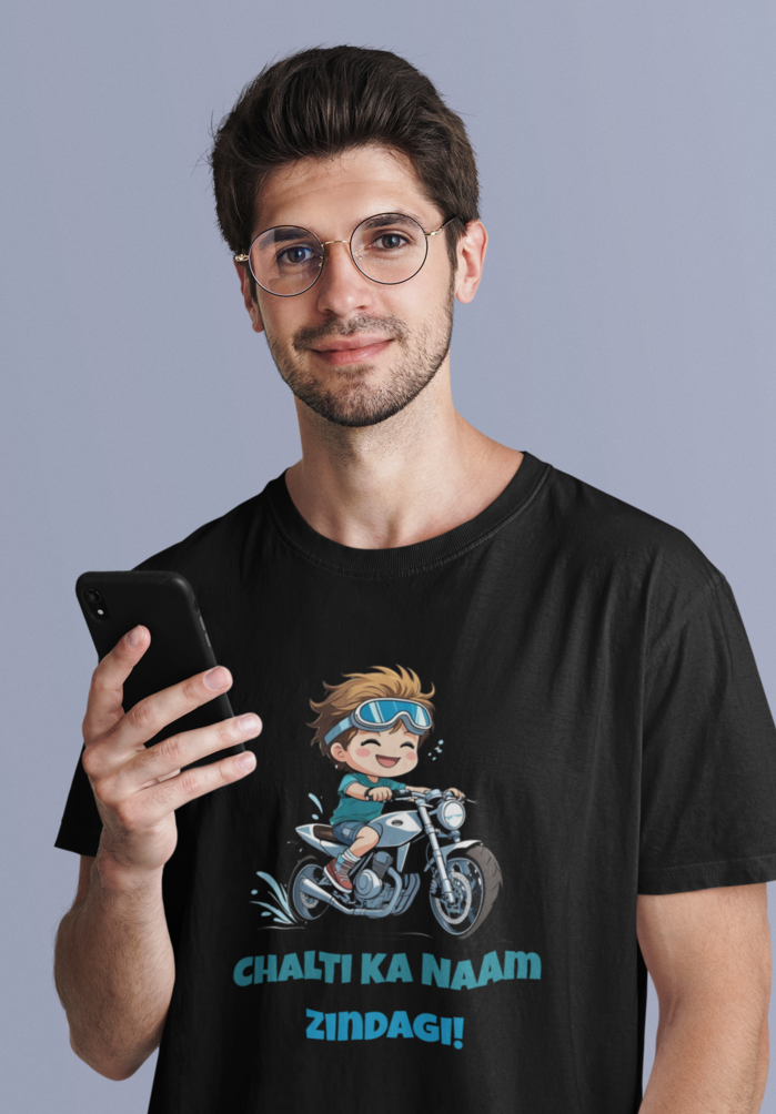 Crafted from premium cotton fabric, the “Chalti Ka Naam Gaadi” tee is designed with your comfort in mind. Its soft texture ensures that you feel at ease whether you’re navigating busy city streets or relaxing at a scenic overlook. The playful illustration adds a fun twist, making it an eye-catching addition to your wardrobe. Perfect for casual outings and road trips alike, this shirt embodies a laid-back, confident style that enhances your adventurous spirit.